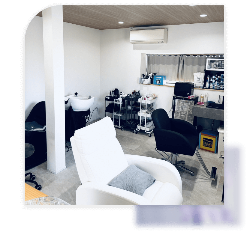 サロン内はシンプルで明るく、清潔感のある心落ち着く空間づくりを大切にしています。